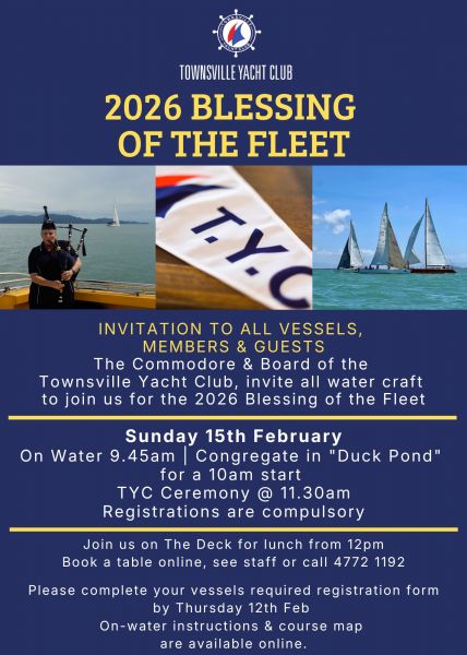 The Commodore & Board of the Townsville Yacht Club invite all water craft to join us for the 2026 Blessing of the Fleet!