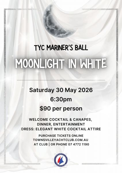 The 2026 Townsville Yacht Club's Mariner's Ball Moonlight in White is your opportunity to get dressed up and dance the night away.