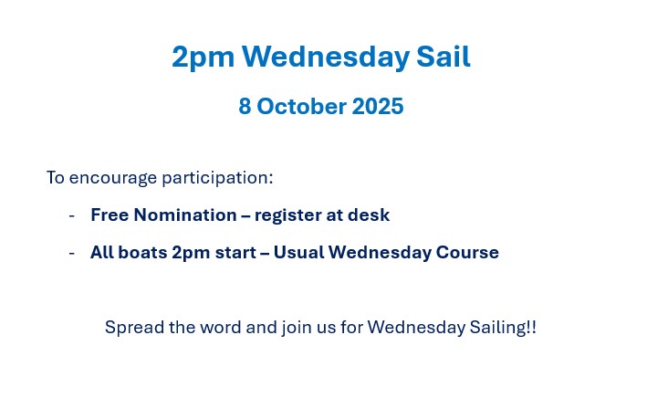 Skippers of boats nominating can view their starting times here - > AFTERNOON SAILING START TIMES - WEDNESDAY 8TH OCTOBER 2025